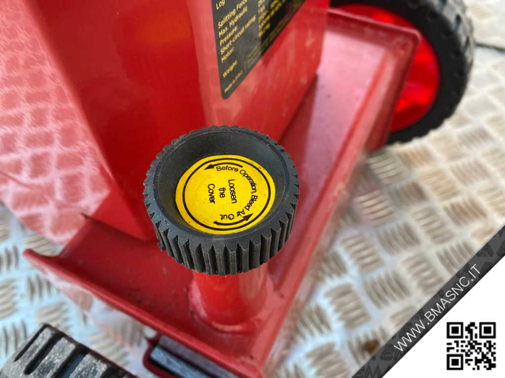 - Lo spaccalegna è dotato di un serbatoio di olio idraulico da 3,5 lt di capacità. Un tappo asta assicura il controllo del livello dell'olio idraulico. N.B. durante l'utilizzo della macchina il tappo asta deve essere svitato per far sfiatare il serbatoio dell'olio.